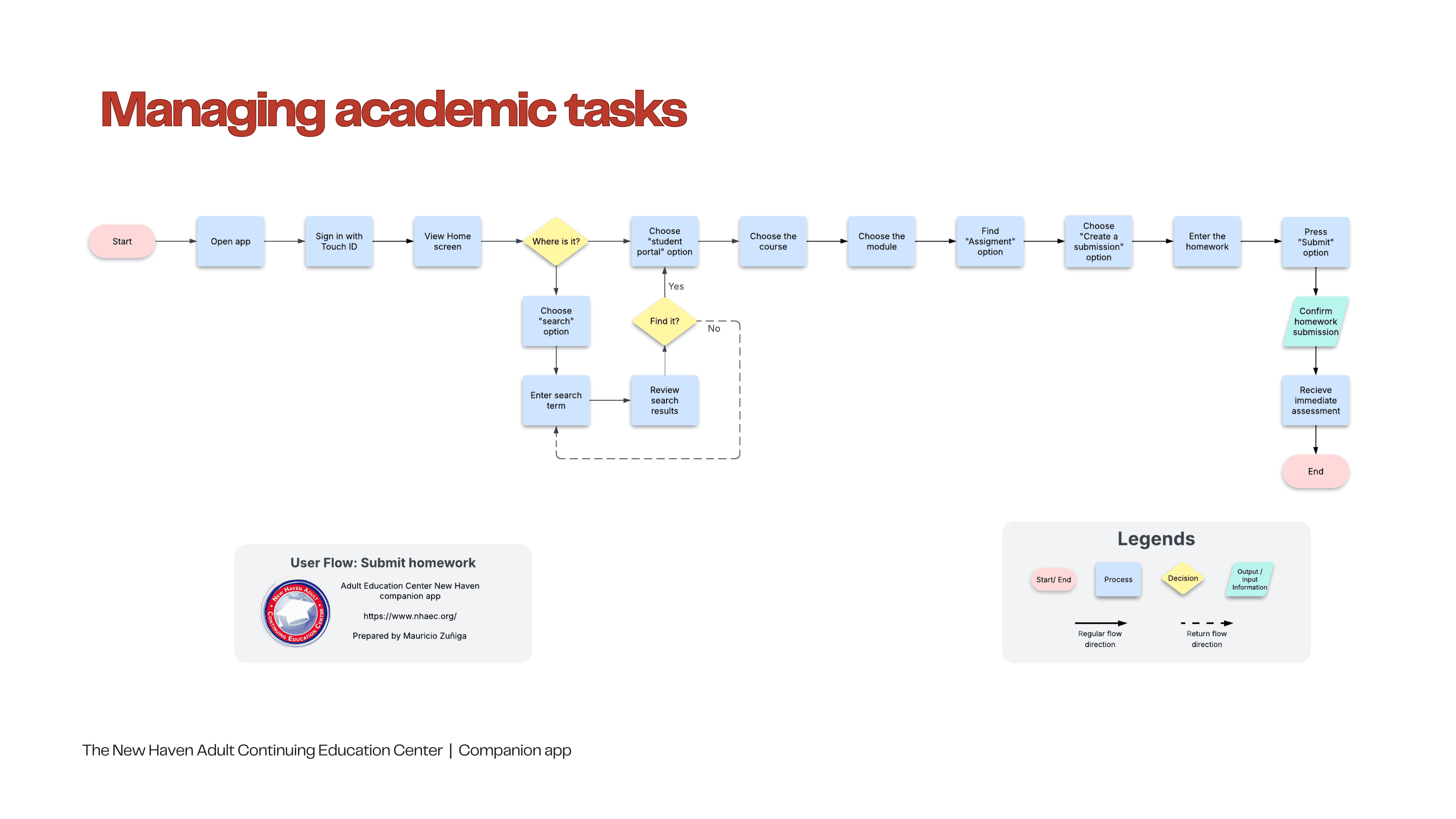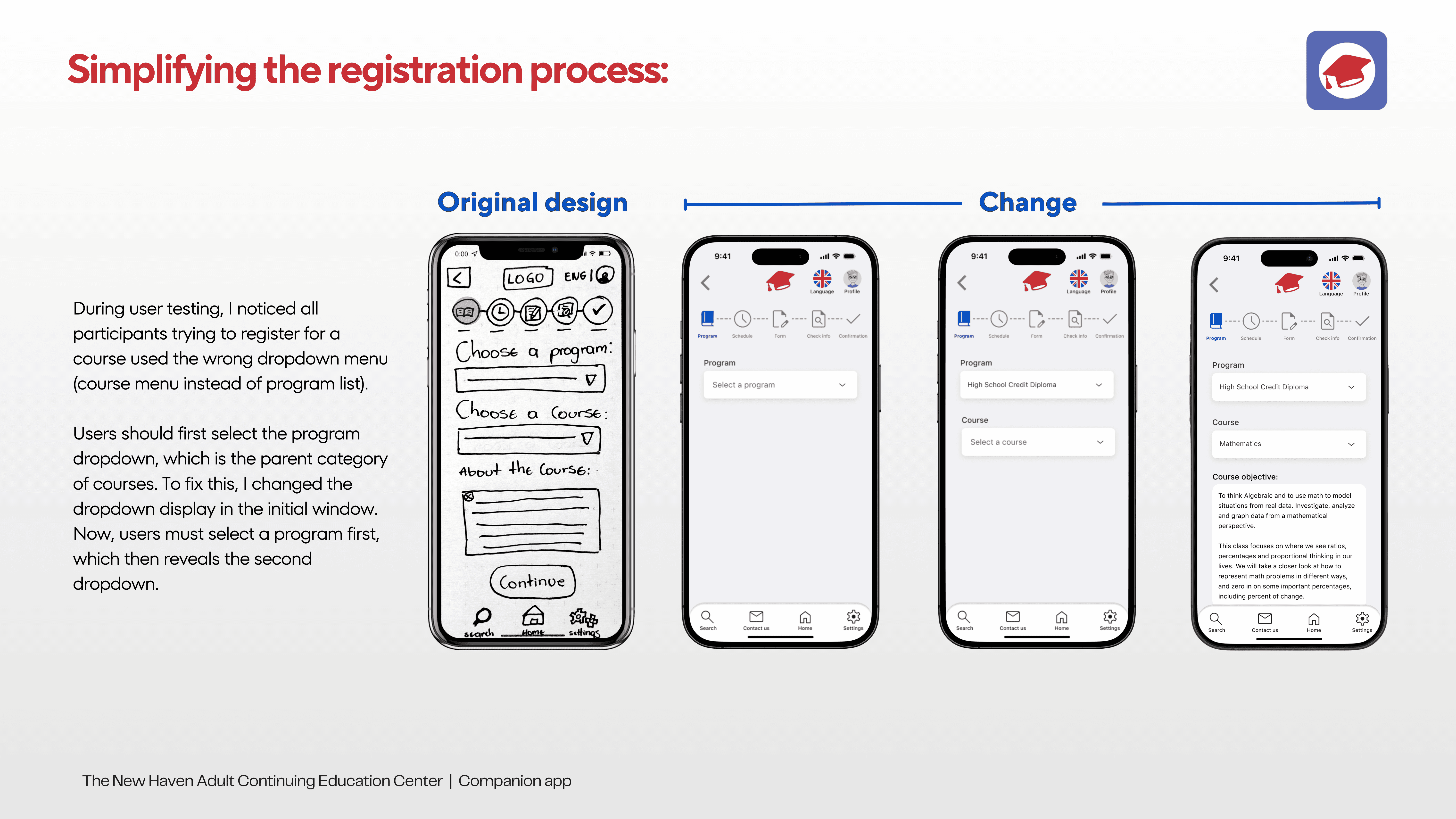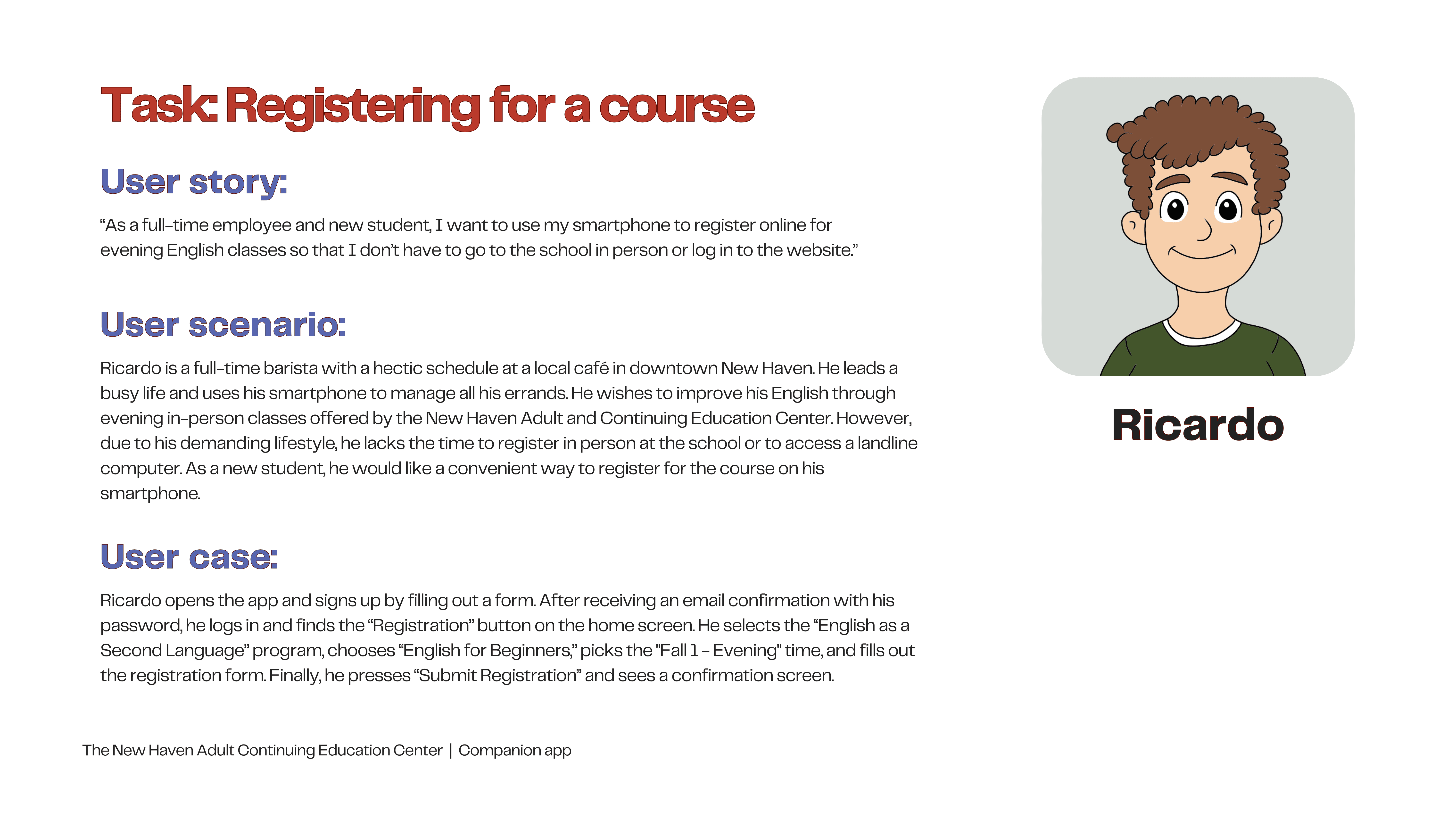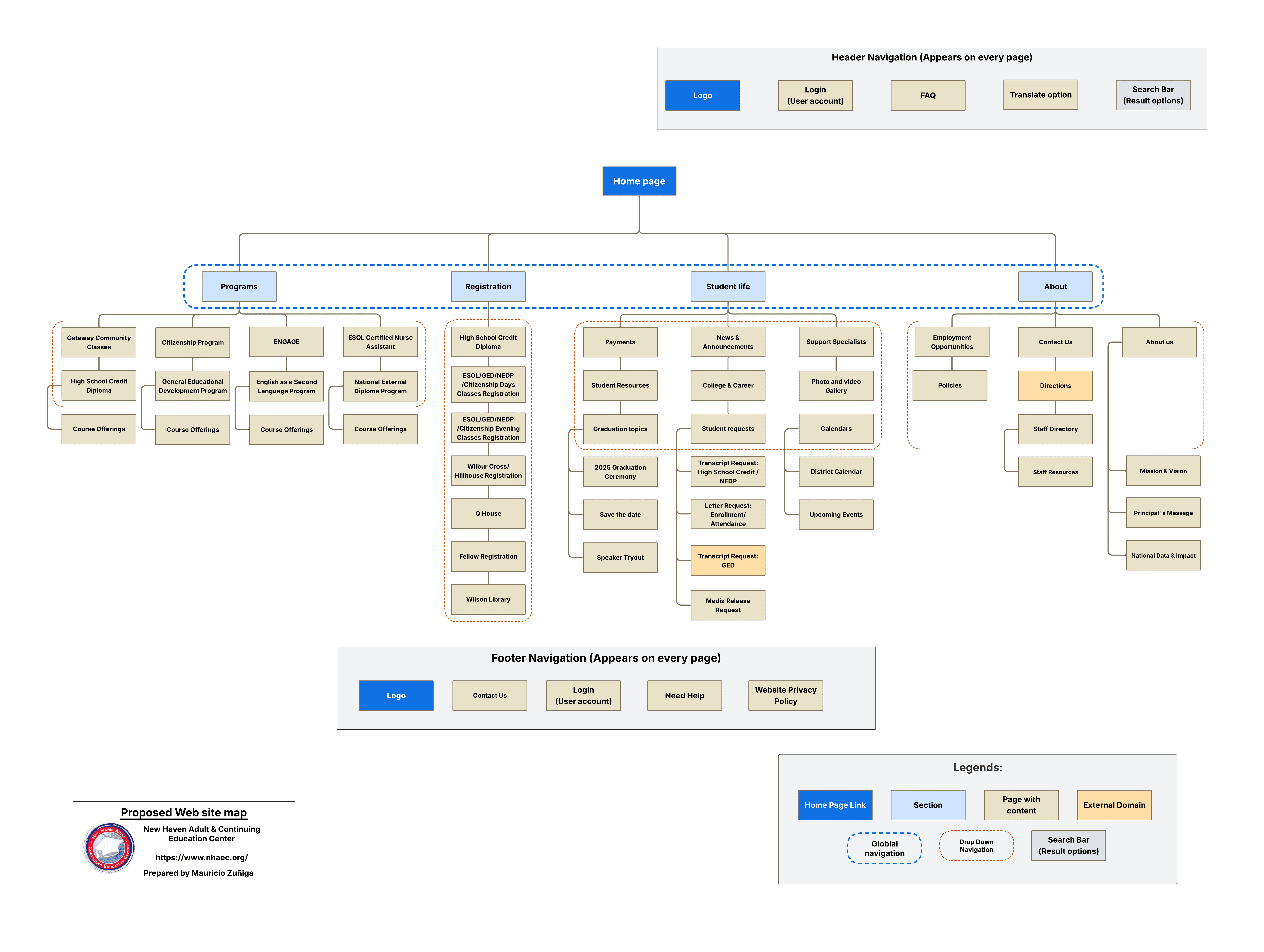 The New Haven Adult Continuing Education Center is a nonprofit organization committed to helping adult learners through various educational programs. Its current website features a disorganized information architecture, overly long navigation bars, multiple duplications, and a lack of clear user paths for student tasks.