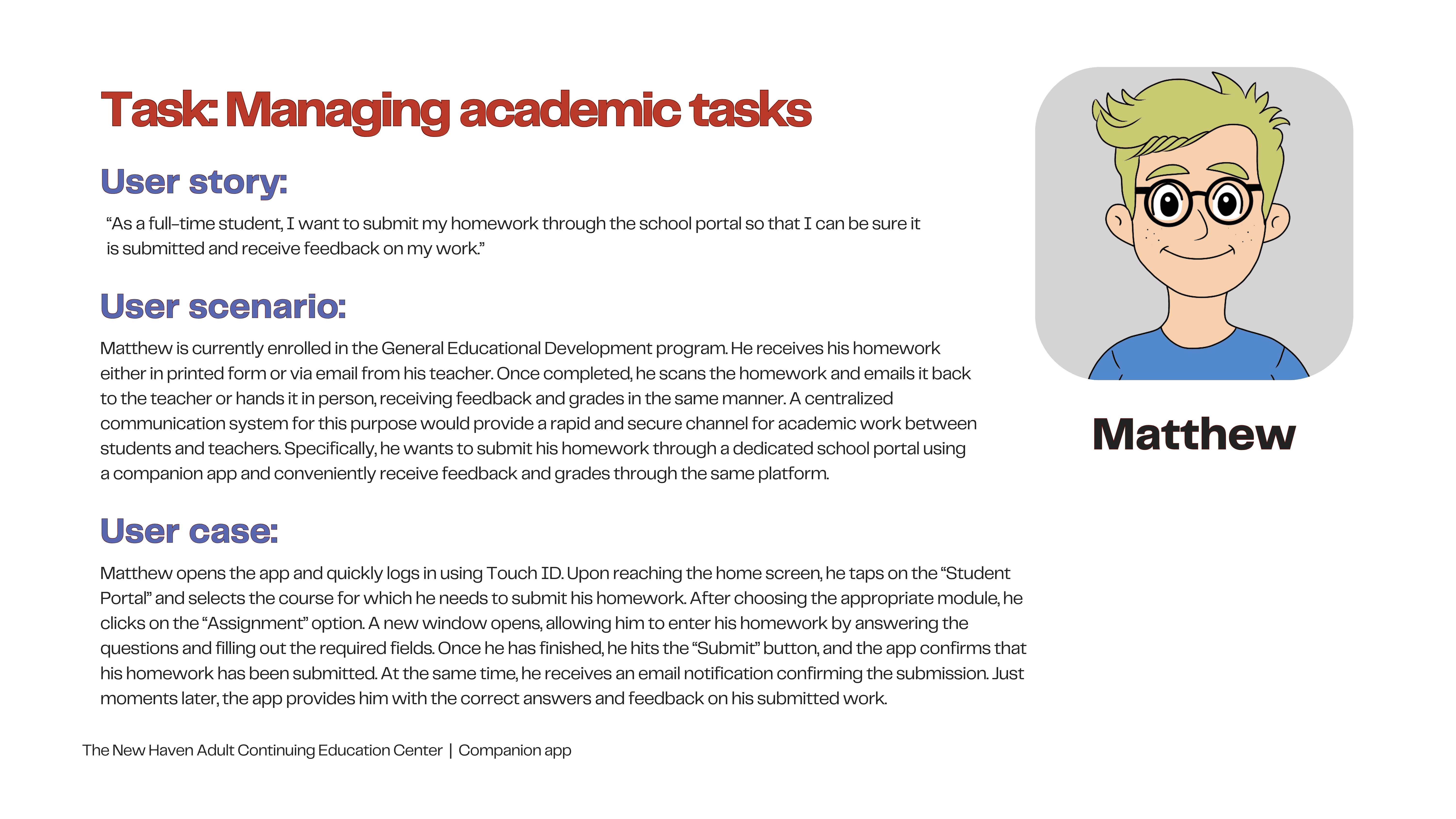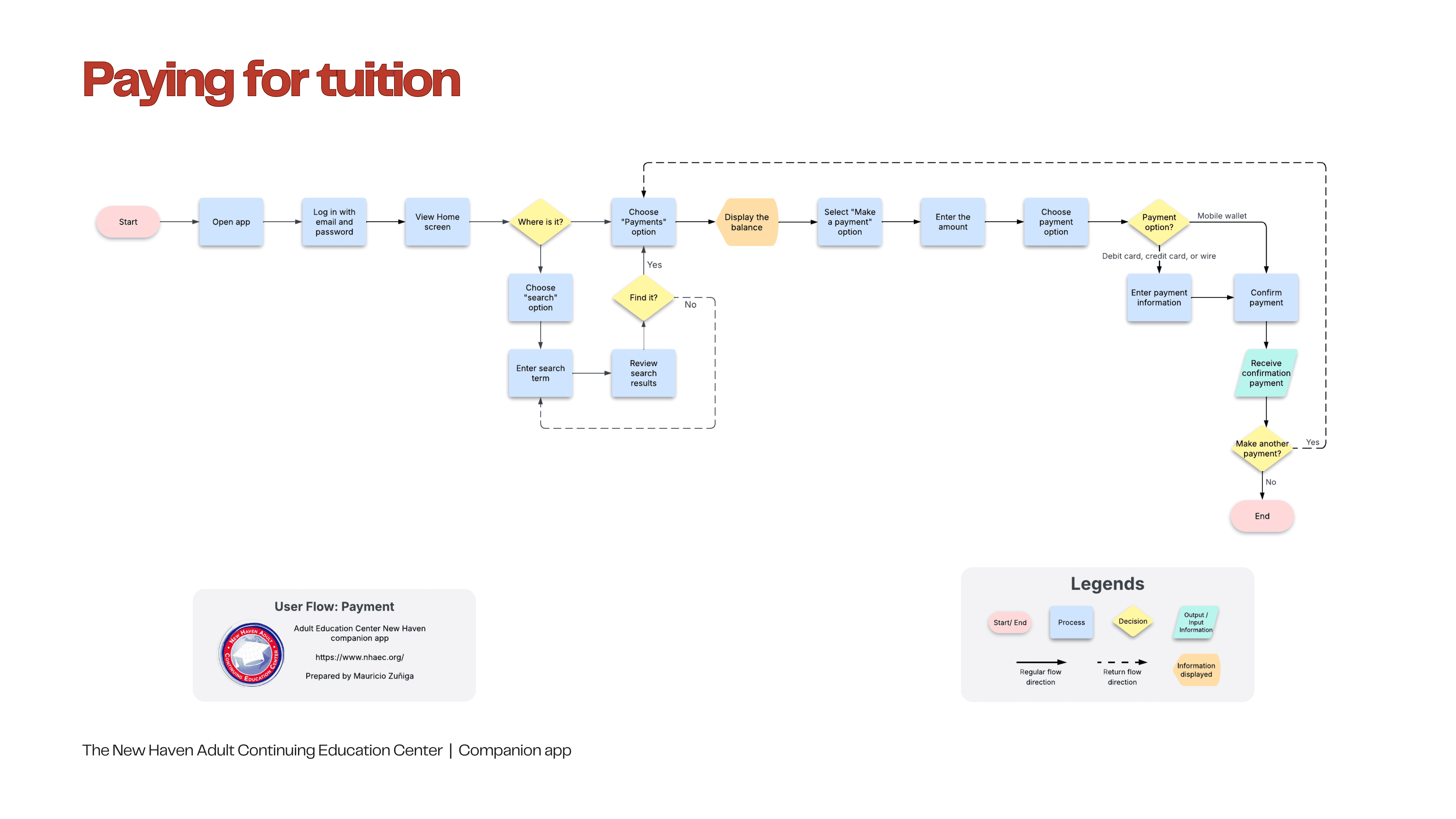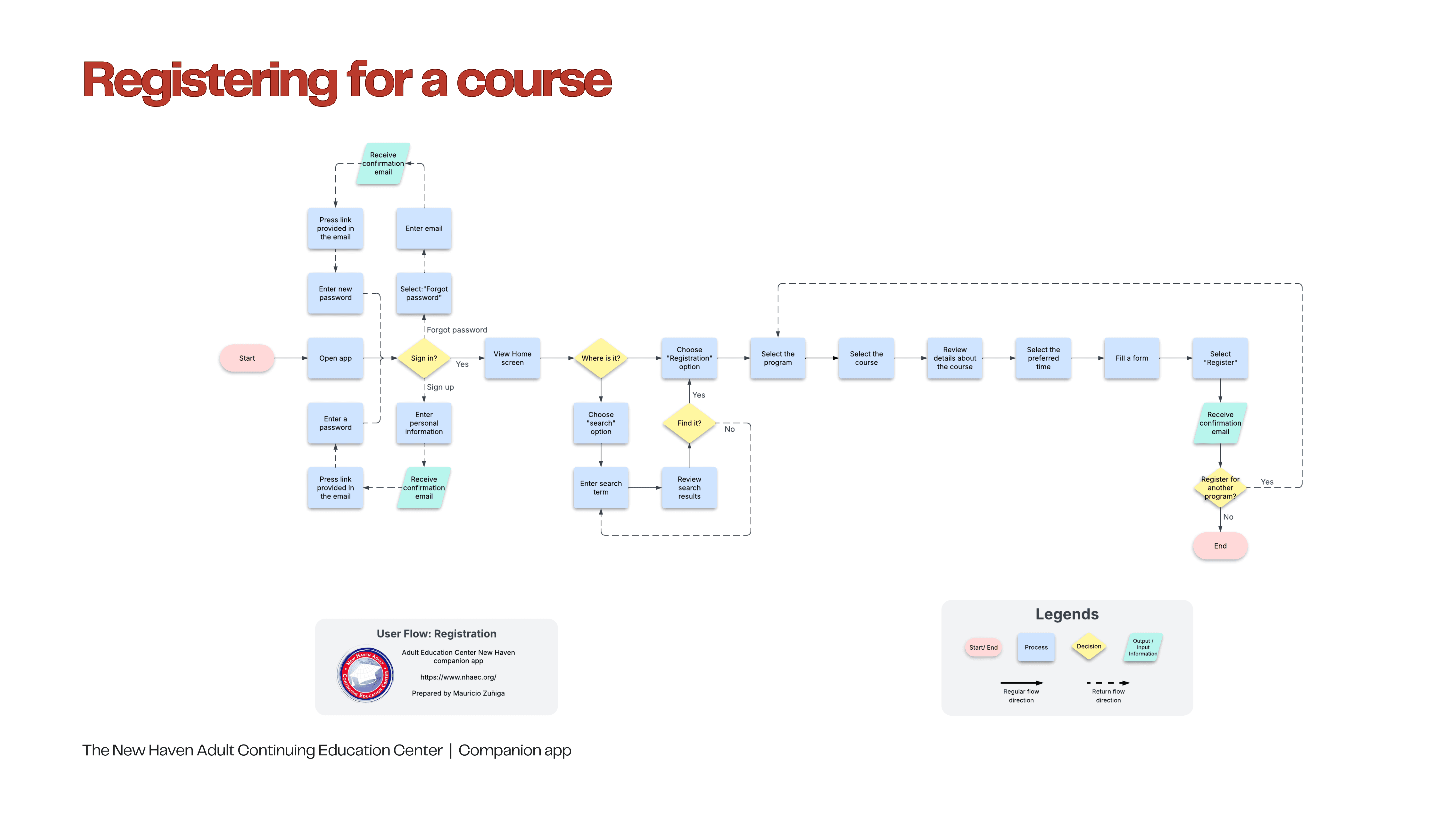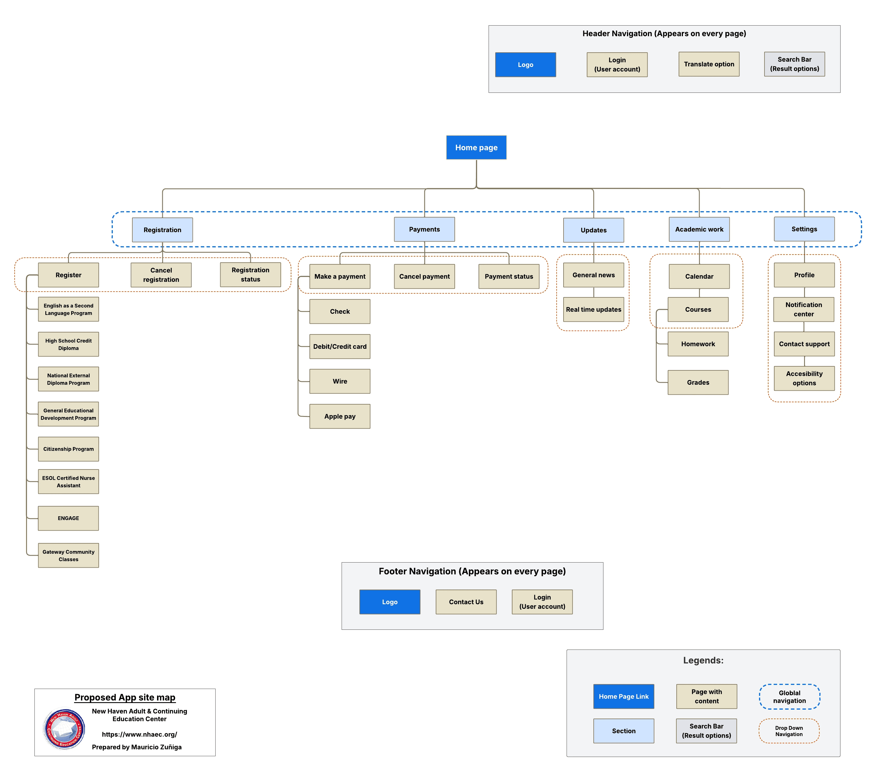 The New Haven Adult Continuing Education Center is a nonprofit organization committed to helping adult learners through various educational programs. Its current website features a disorganized information architecture, overly long navigation bars, multiple duplications, and a lack of clear user paths for student tasks.