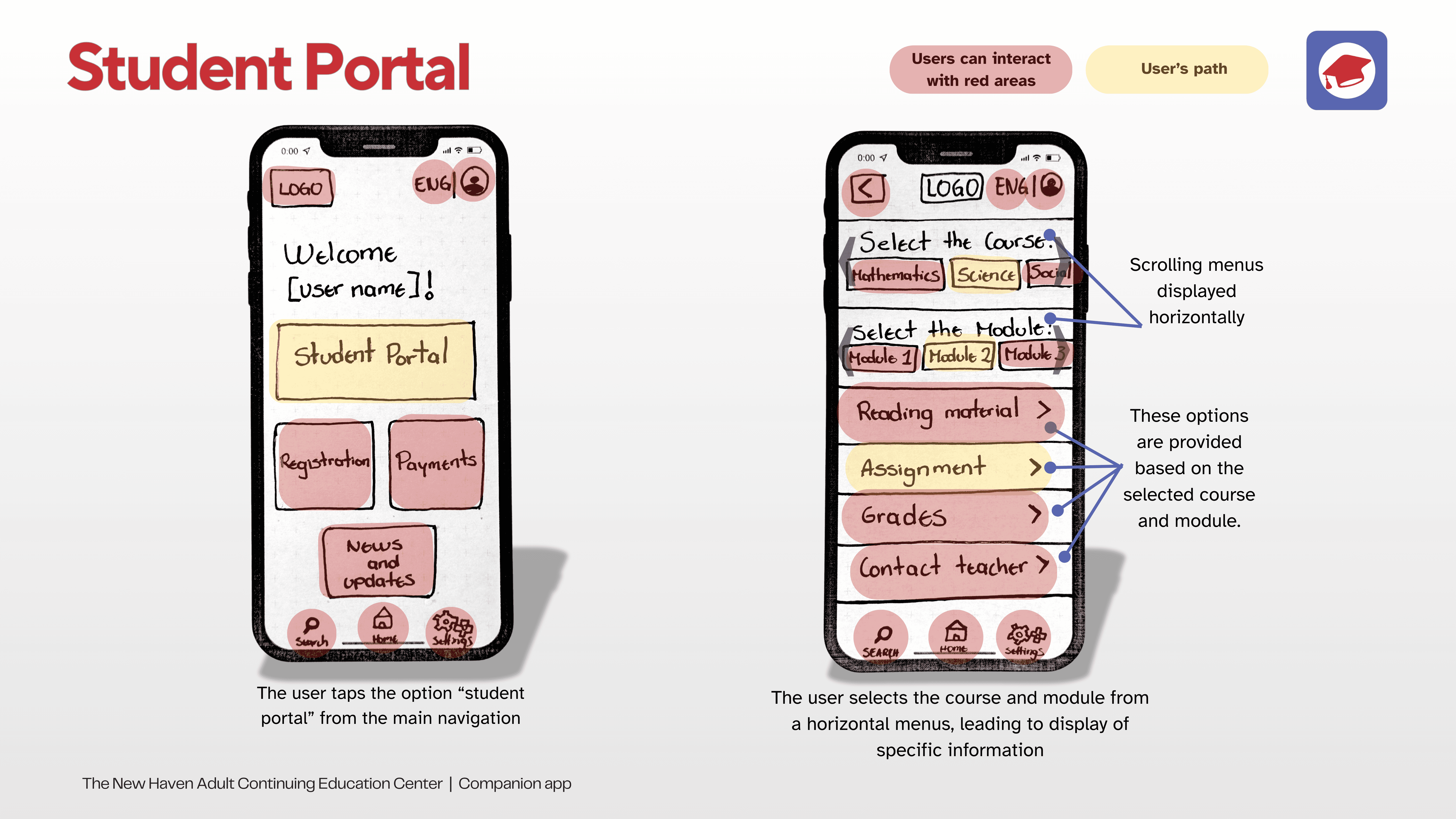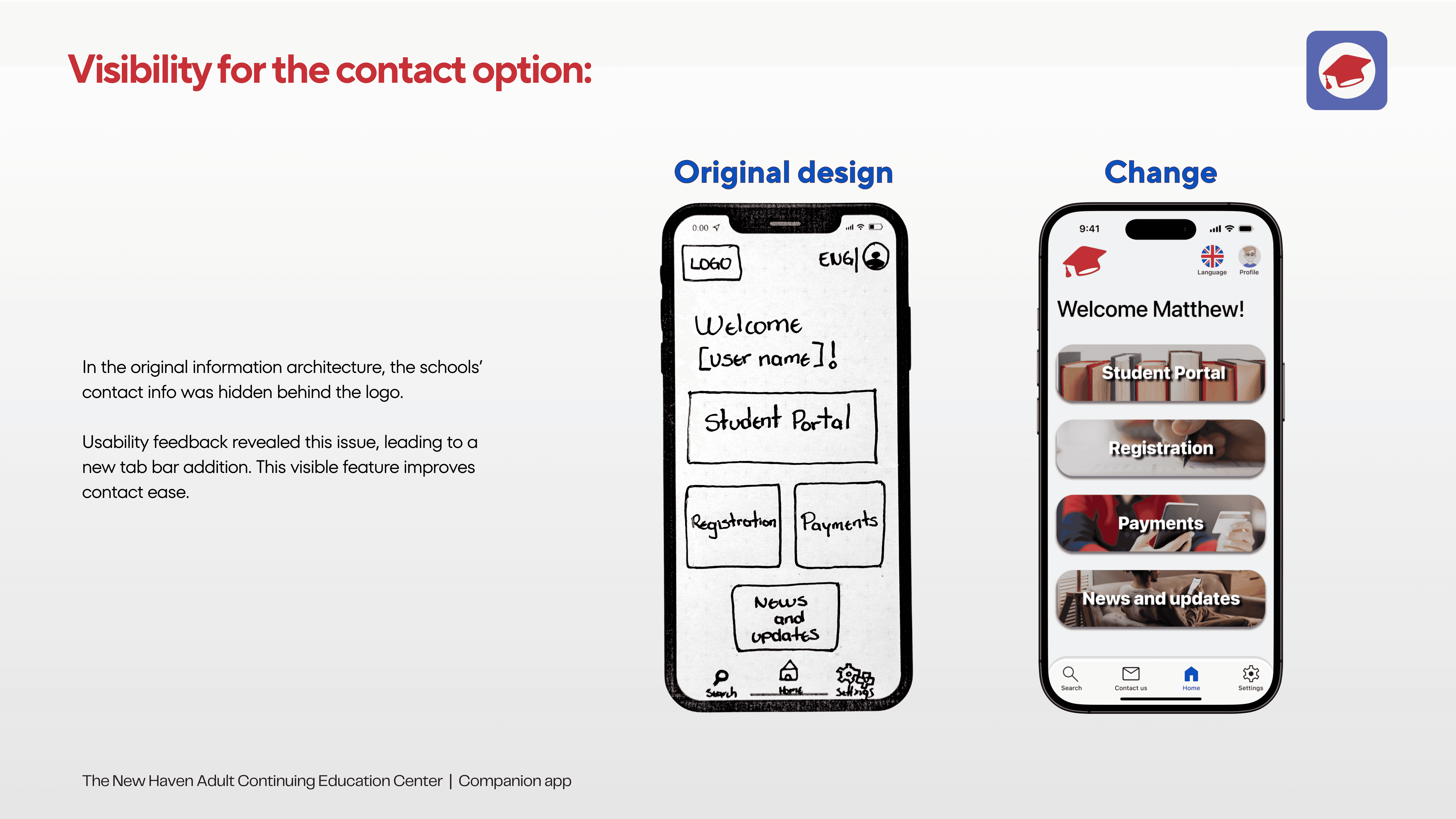 Modify the current website's information architecture and design a task-oriented companion app. These will provide a seamless user experience with common student tasks, including course registration and tuition payments.