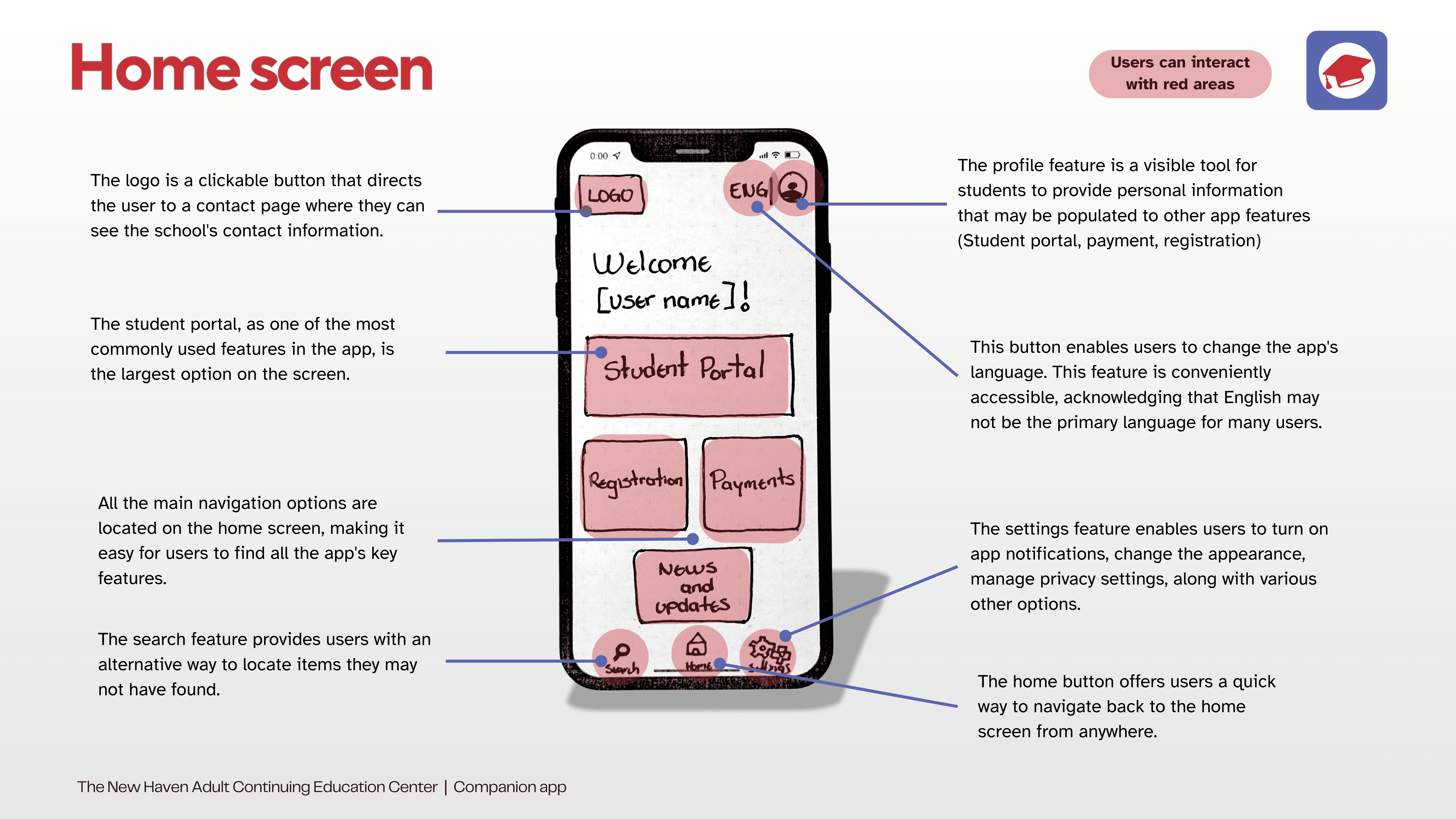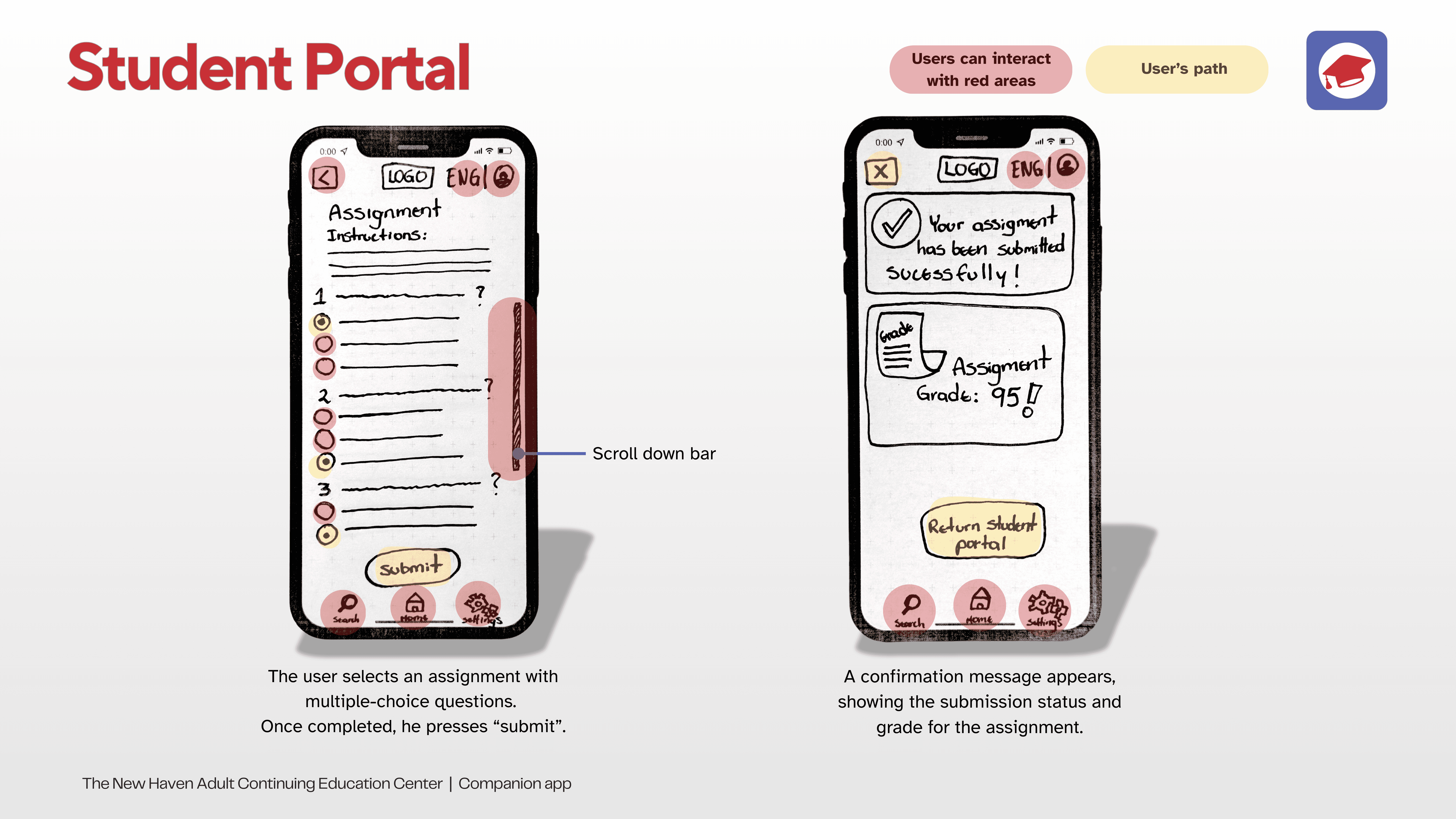 The app’s target audience includes students whose first language isn't English and who lack a solid academic background. The IA should be simple and clear, with a straightforward path for each task.