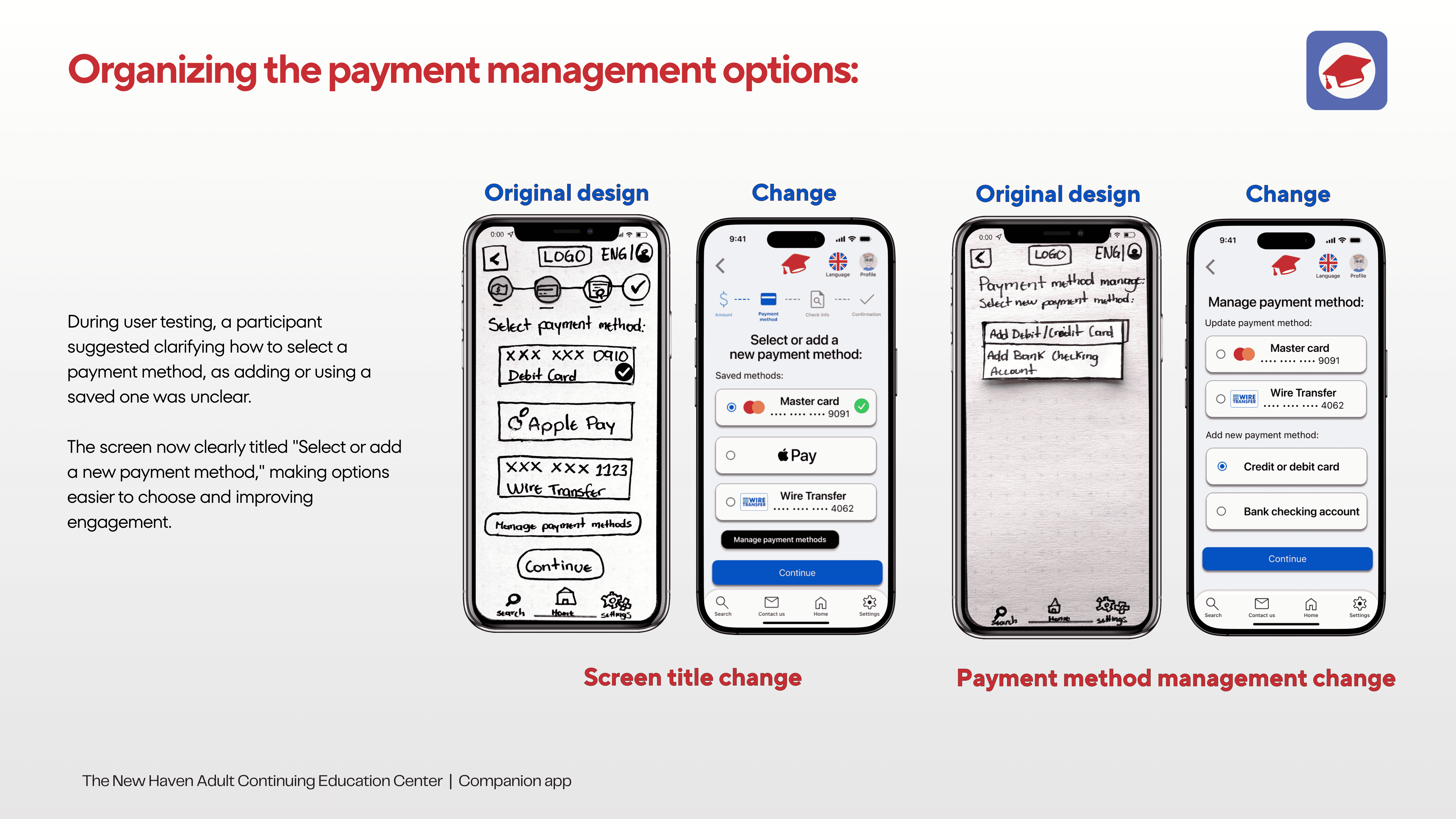 Payment method ambiguity → clearer hierarchy and labeling