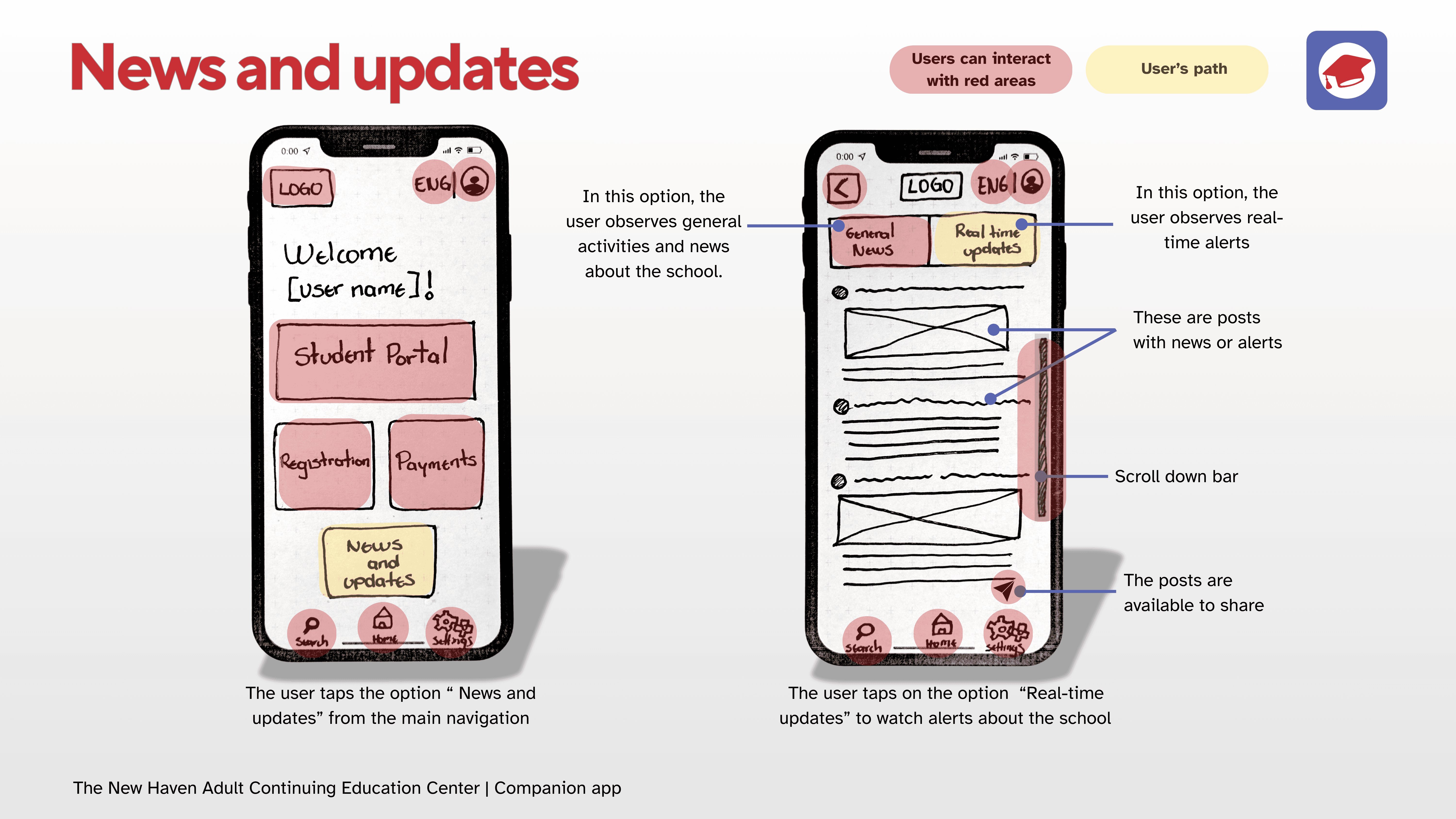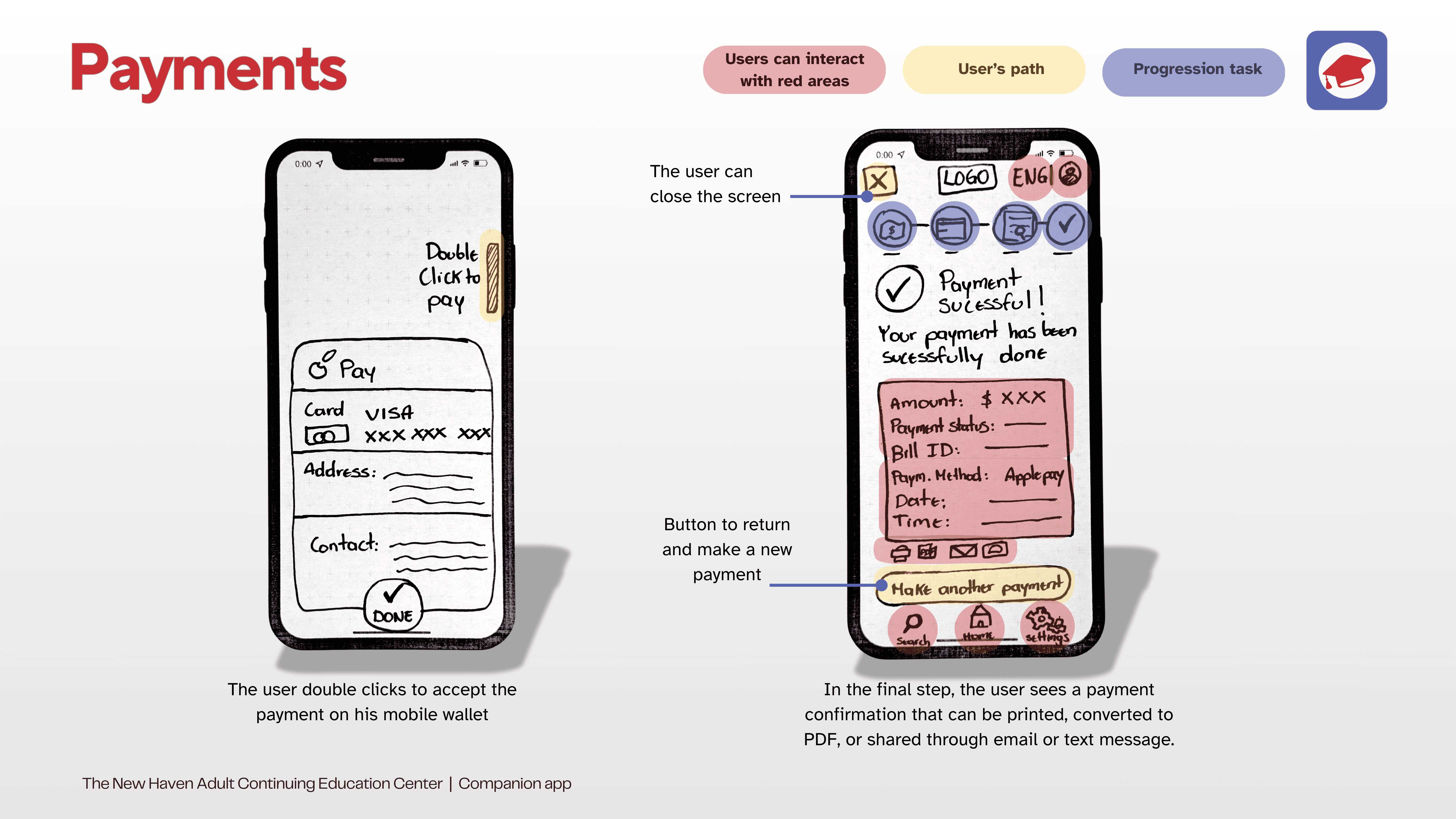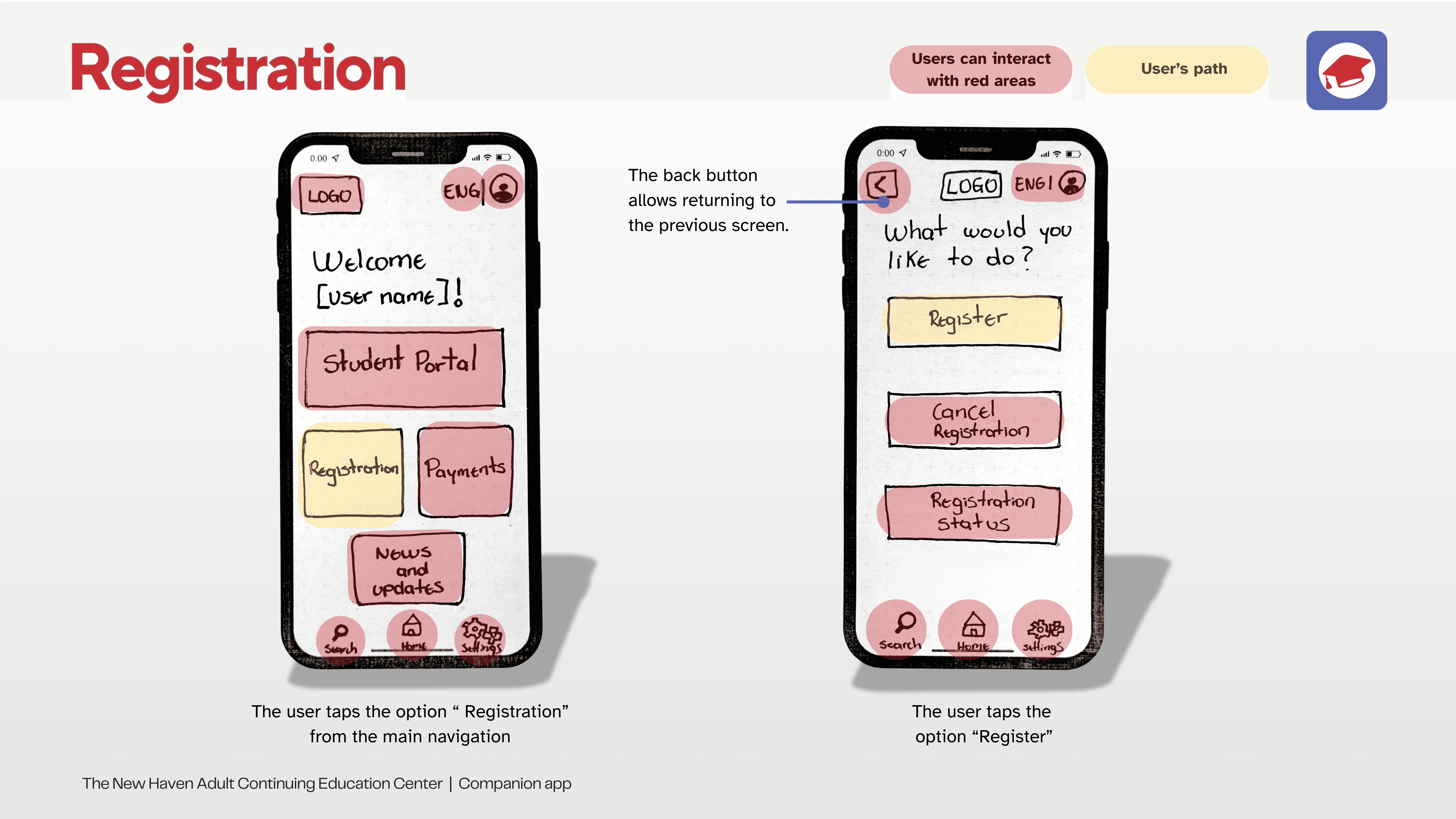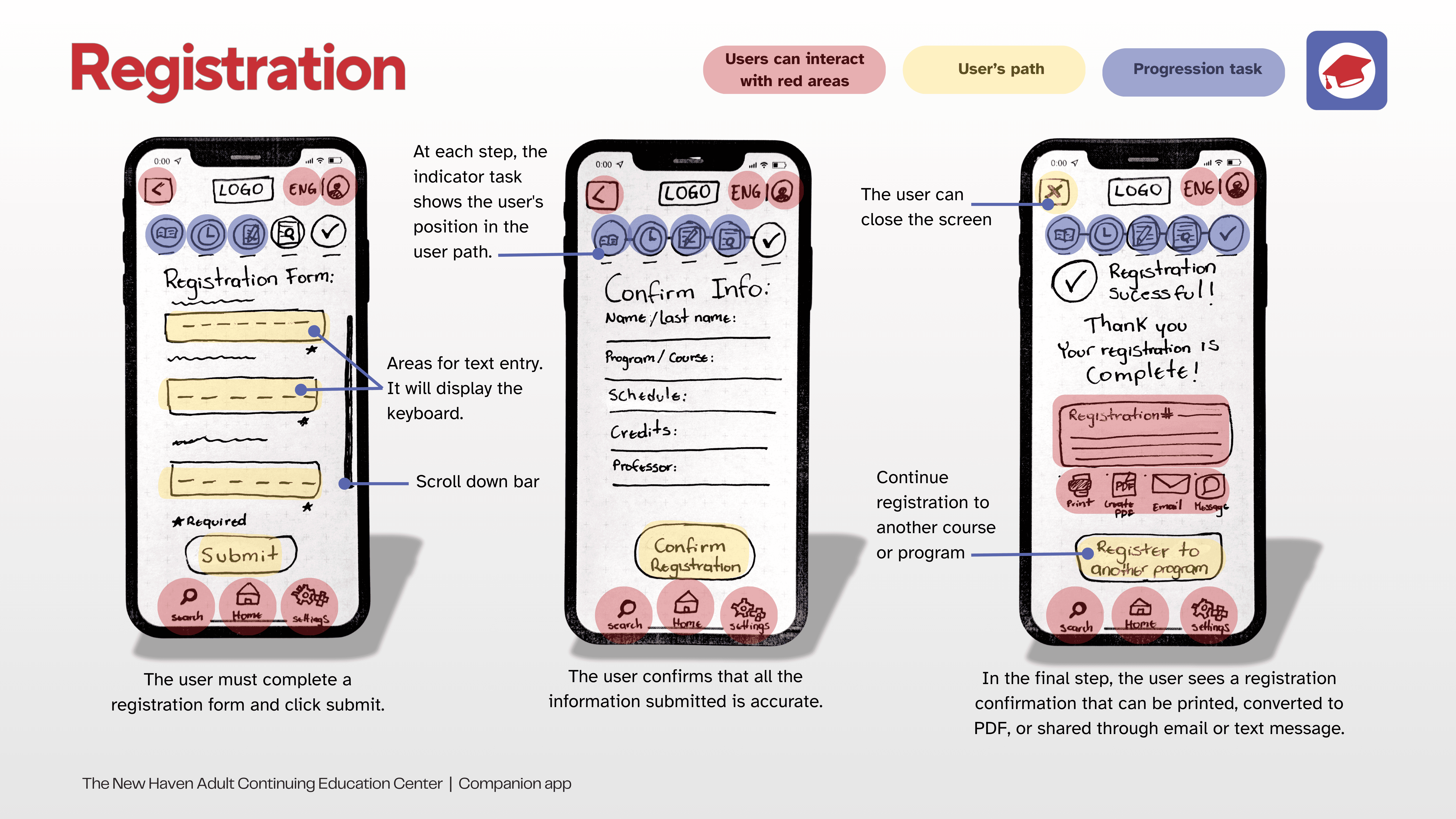 The following flows are presented through paper prototyping:
