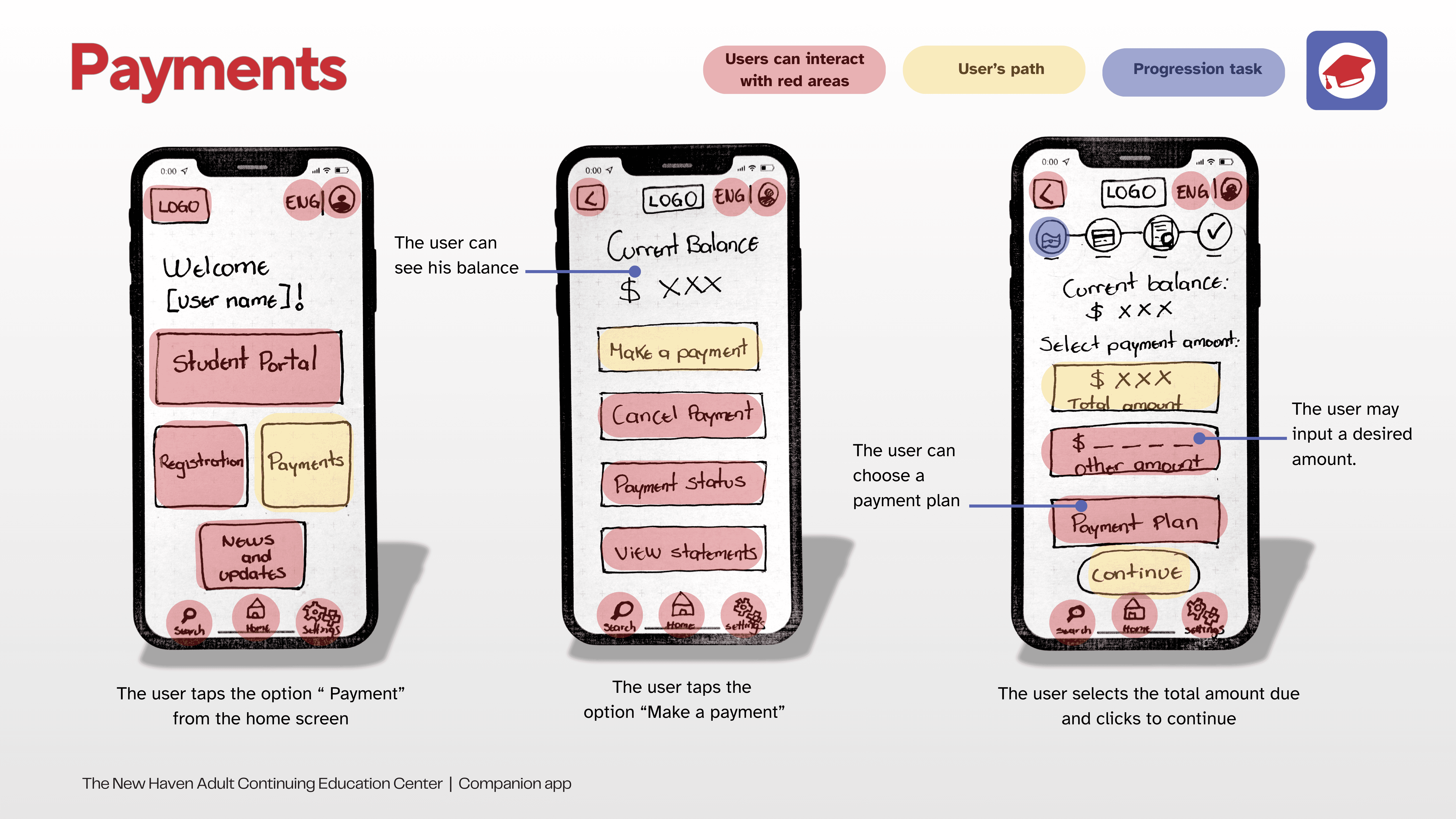 The paper's low-fidelity prototype was designed based on the user flows and the revised IA. Paper wireframes helped me define the layout, hierarchy, and flow, emphasizing structure over visuals.