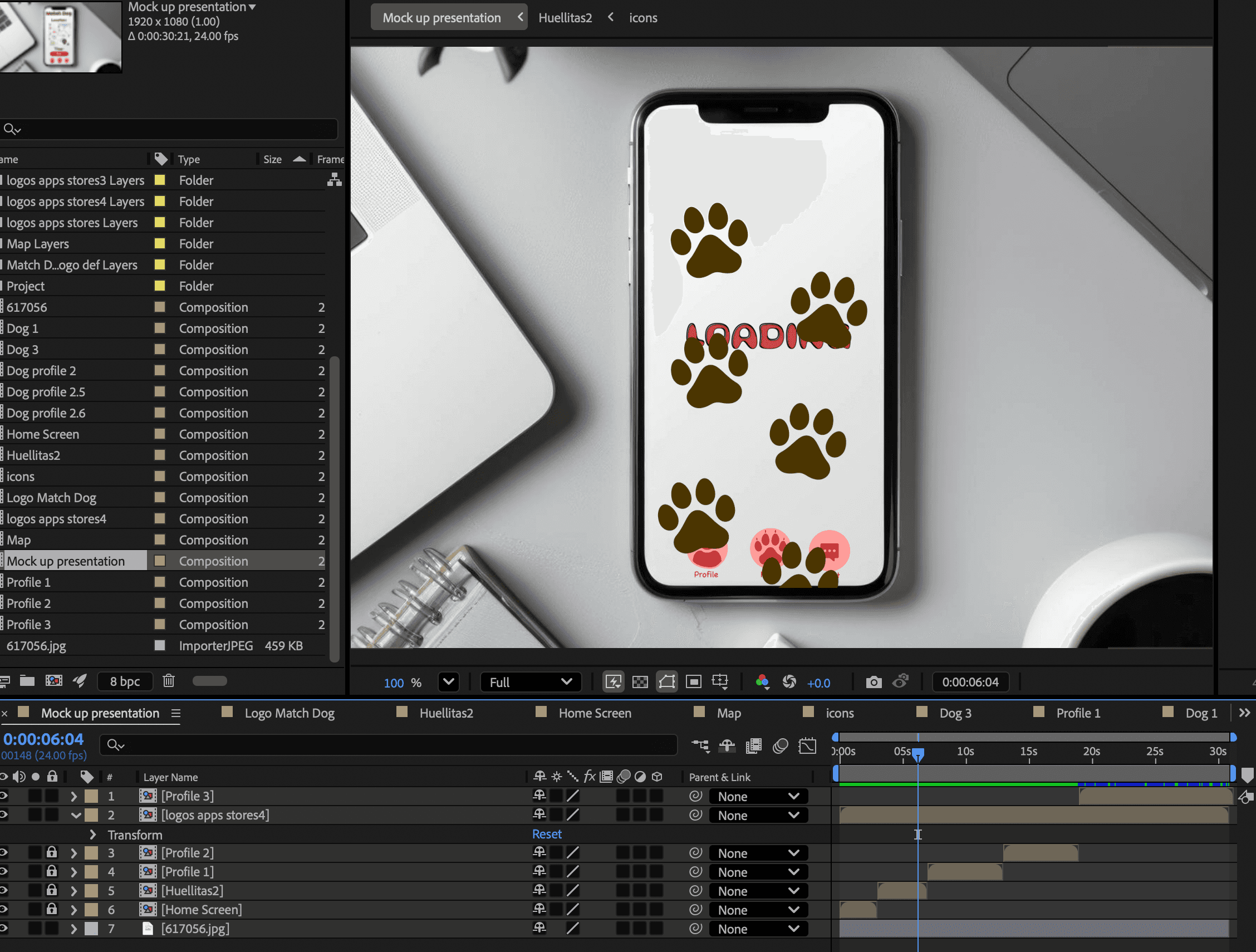 Other characters in the video were animated using the "Puppet Pin Tool" to animate the dog's tongues and ears. Additionally, other movement techniques were employed to animate the tails and certain body parts.