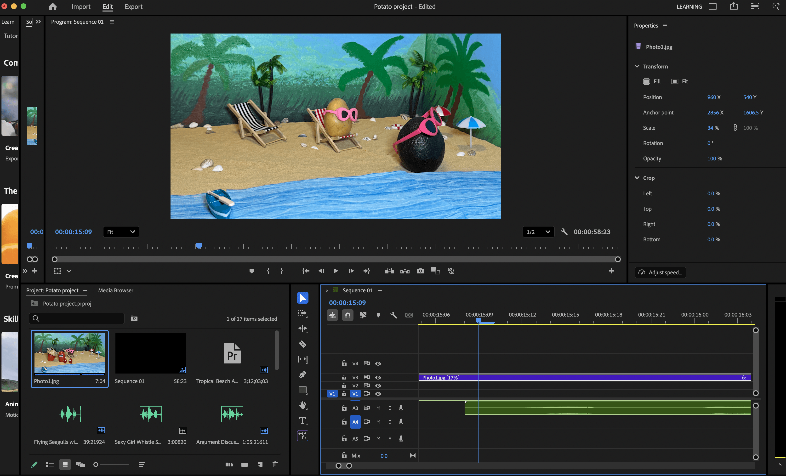 Humor sounds were incorporated throughout the video. A funny scene features a potato whistling at an passing avocado, with amusing background conversations among the vegetables. The finale includes a surprise scream highlighting sunscreen neglect. All sounds are credited for copyright.
