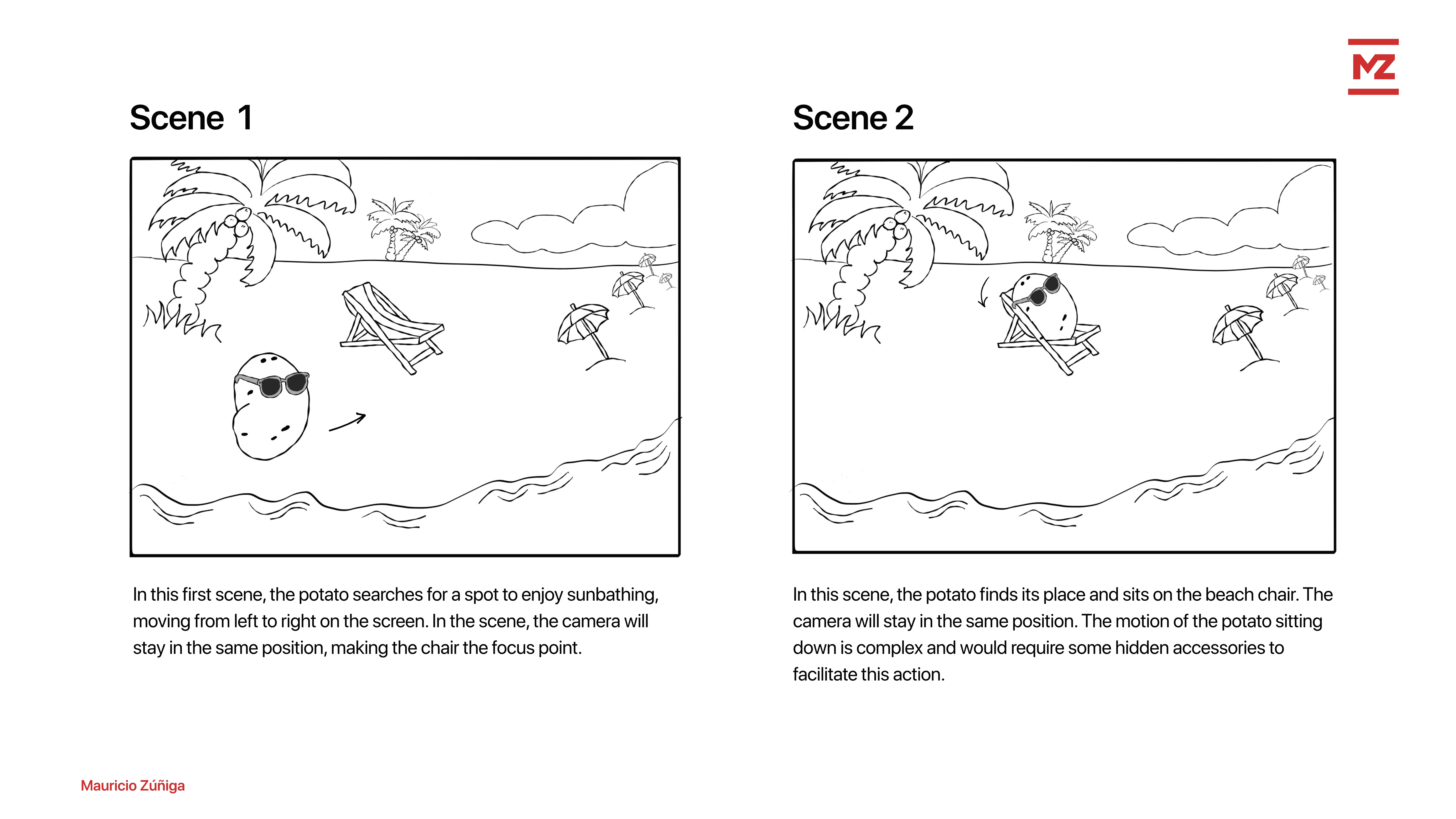 Exposition: The potato discovers a beach chair.