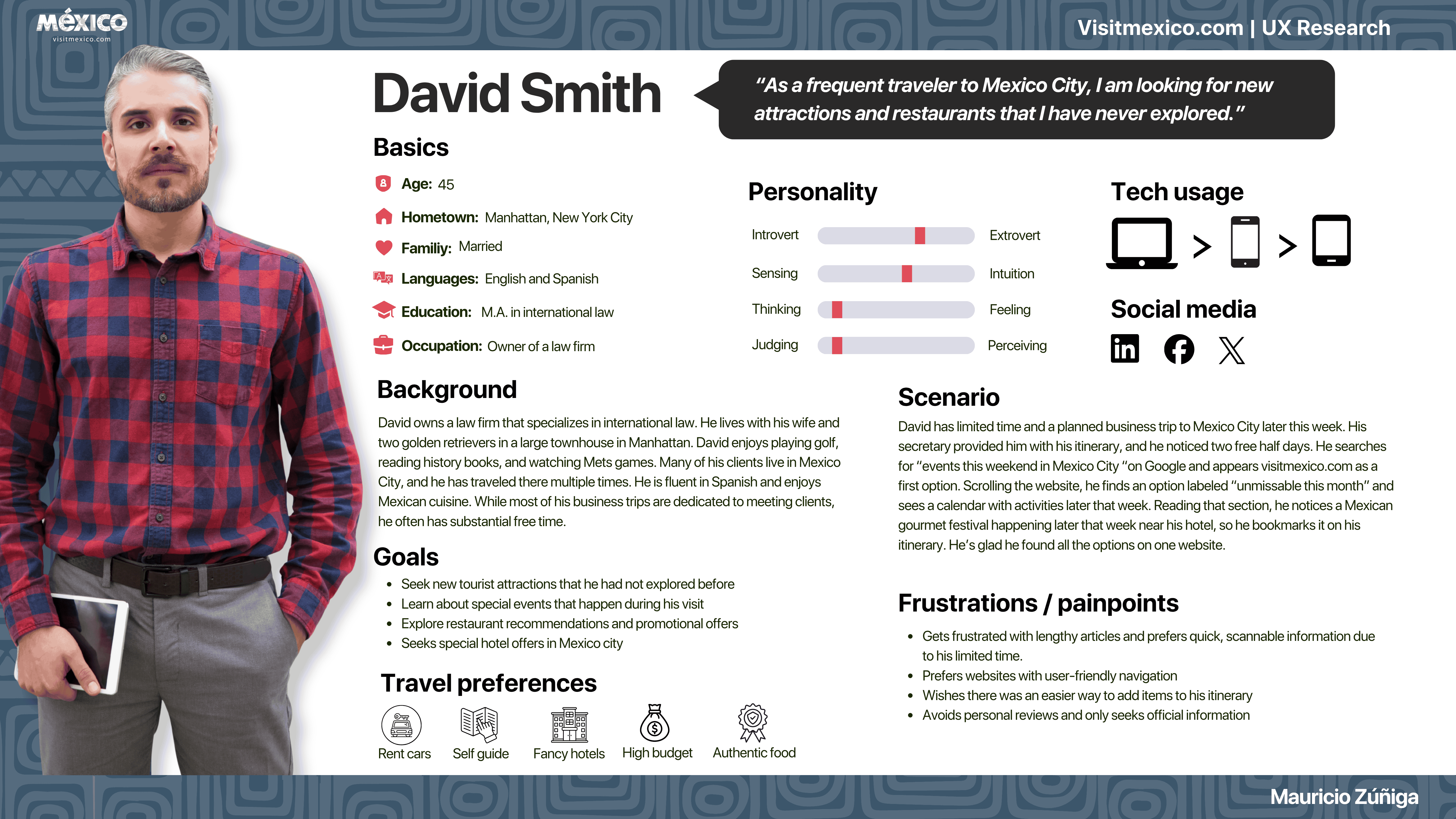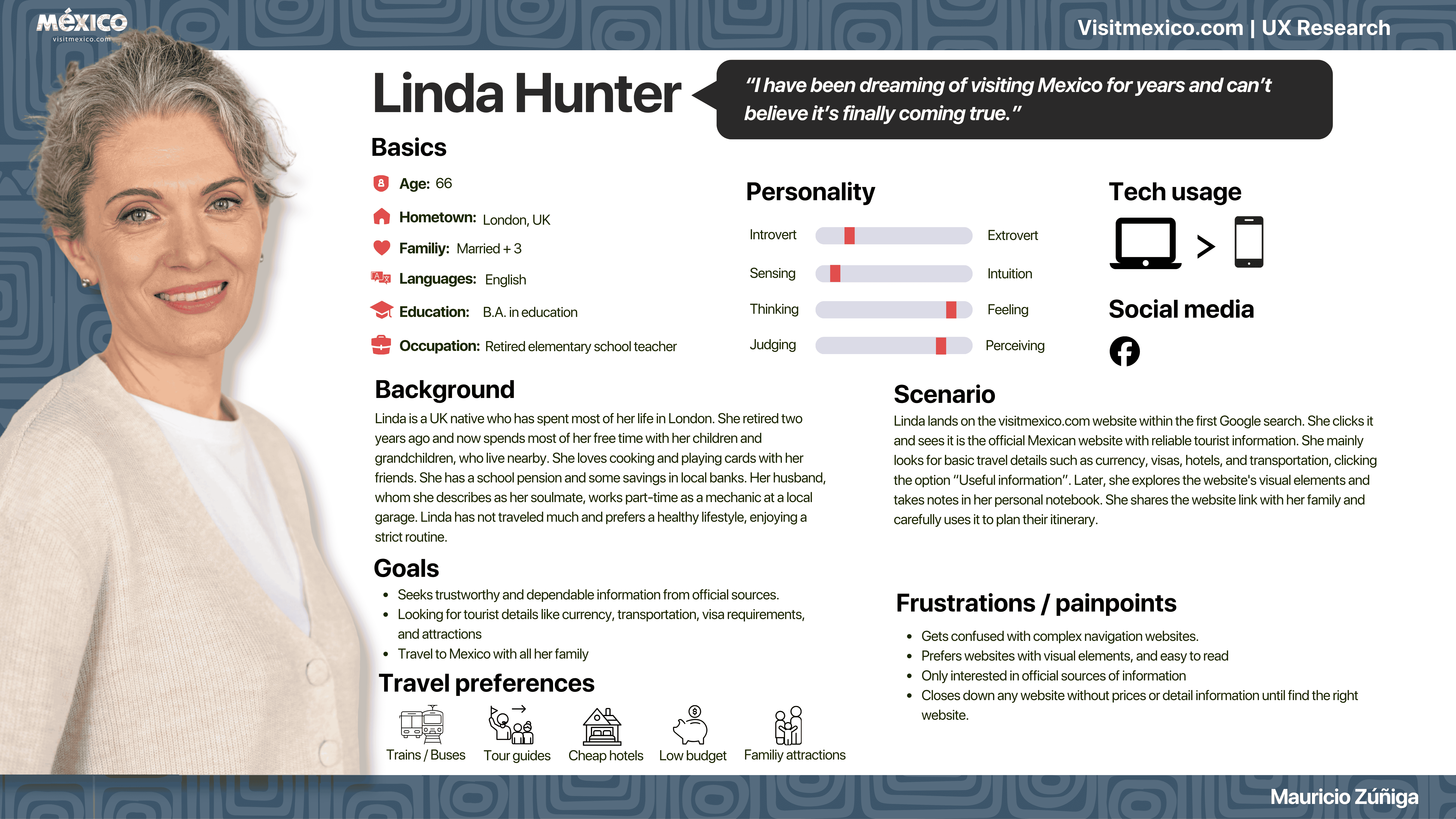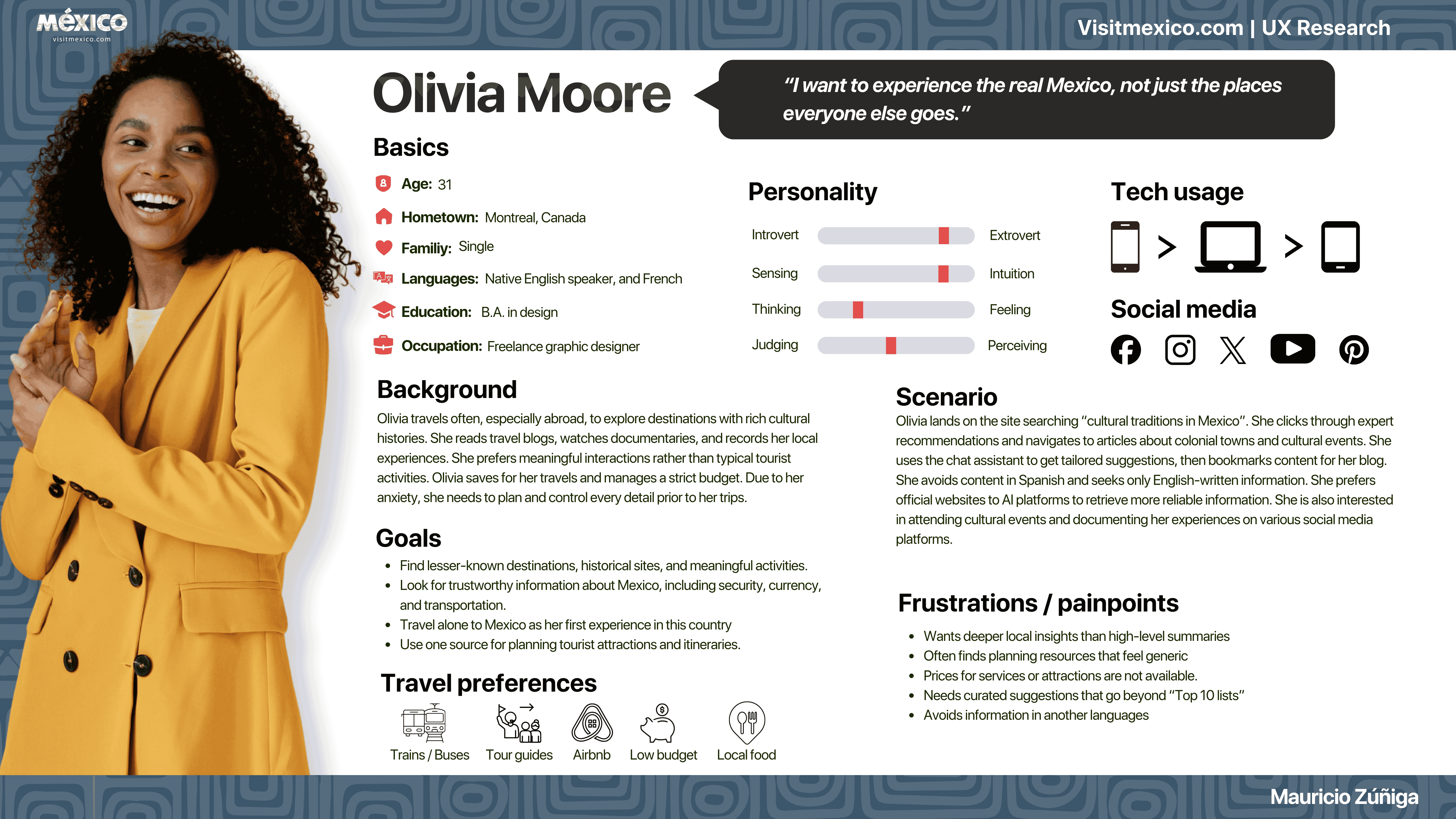Provide a detailed analysis of user experience research for VisitMexico.com. It assesses how effectively the website meets travelers' needs and identifies usability issues impacting navigation, satisfaction, trust, and decision-making. The study also seeks to better understand user behaviors, motivations, and challenges through the use of diverse research methods.