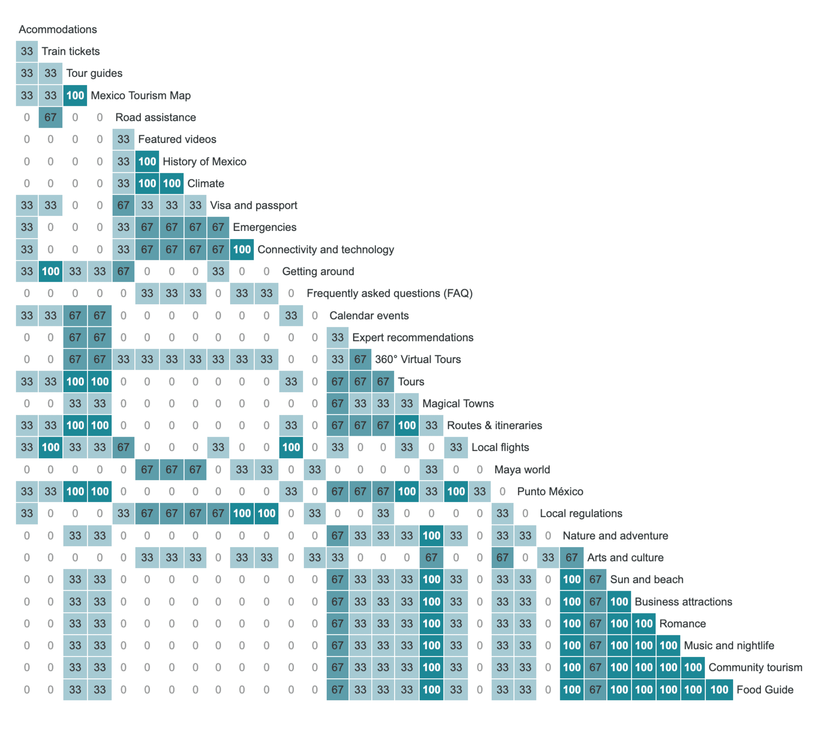 Card sorting Similarity Matrix