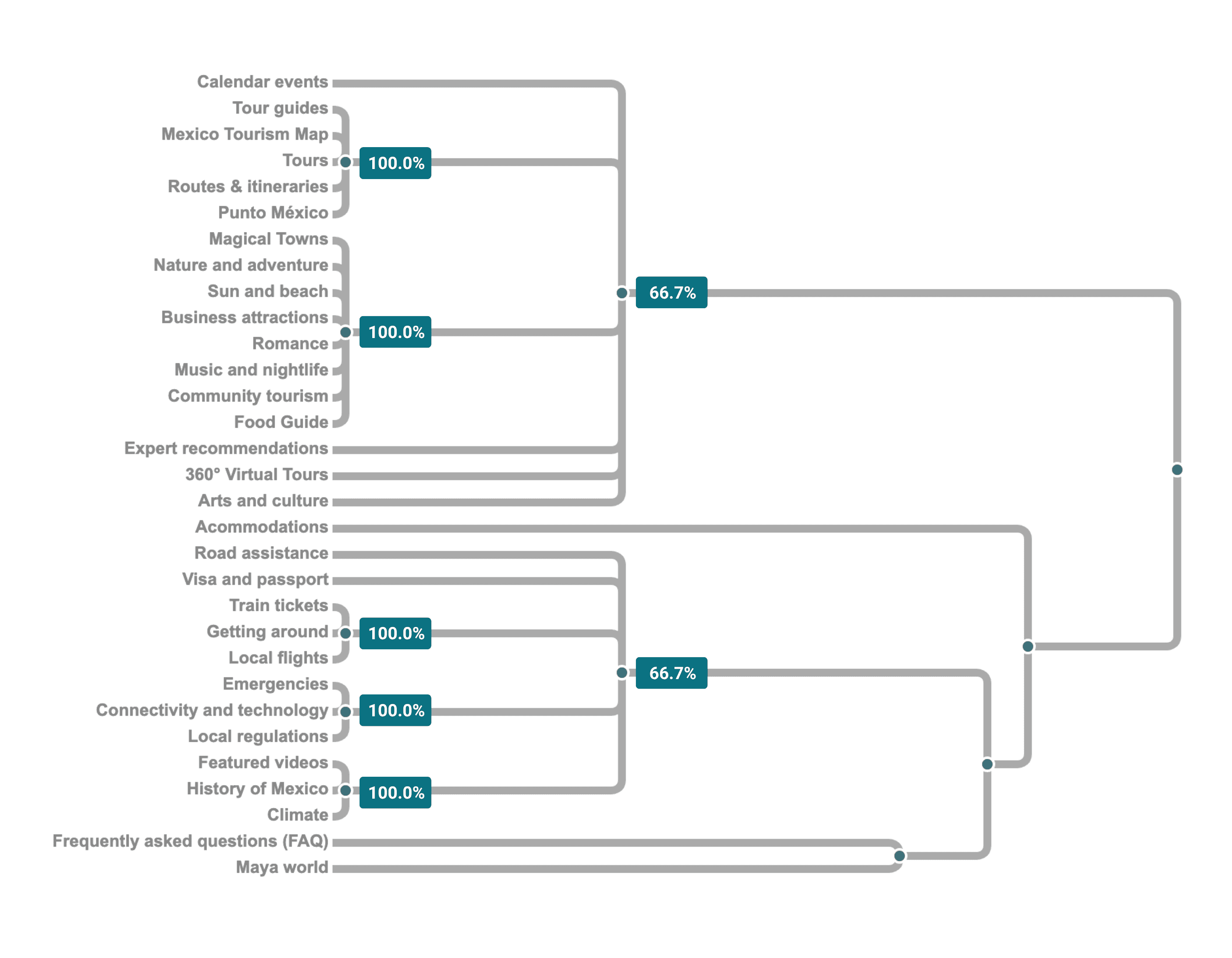 31 cards were assembled from the homepage navigation features and from specific content pages on VisitMexico.com. This card-sorting exercise was conducted using the “Proven by Users” tool.